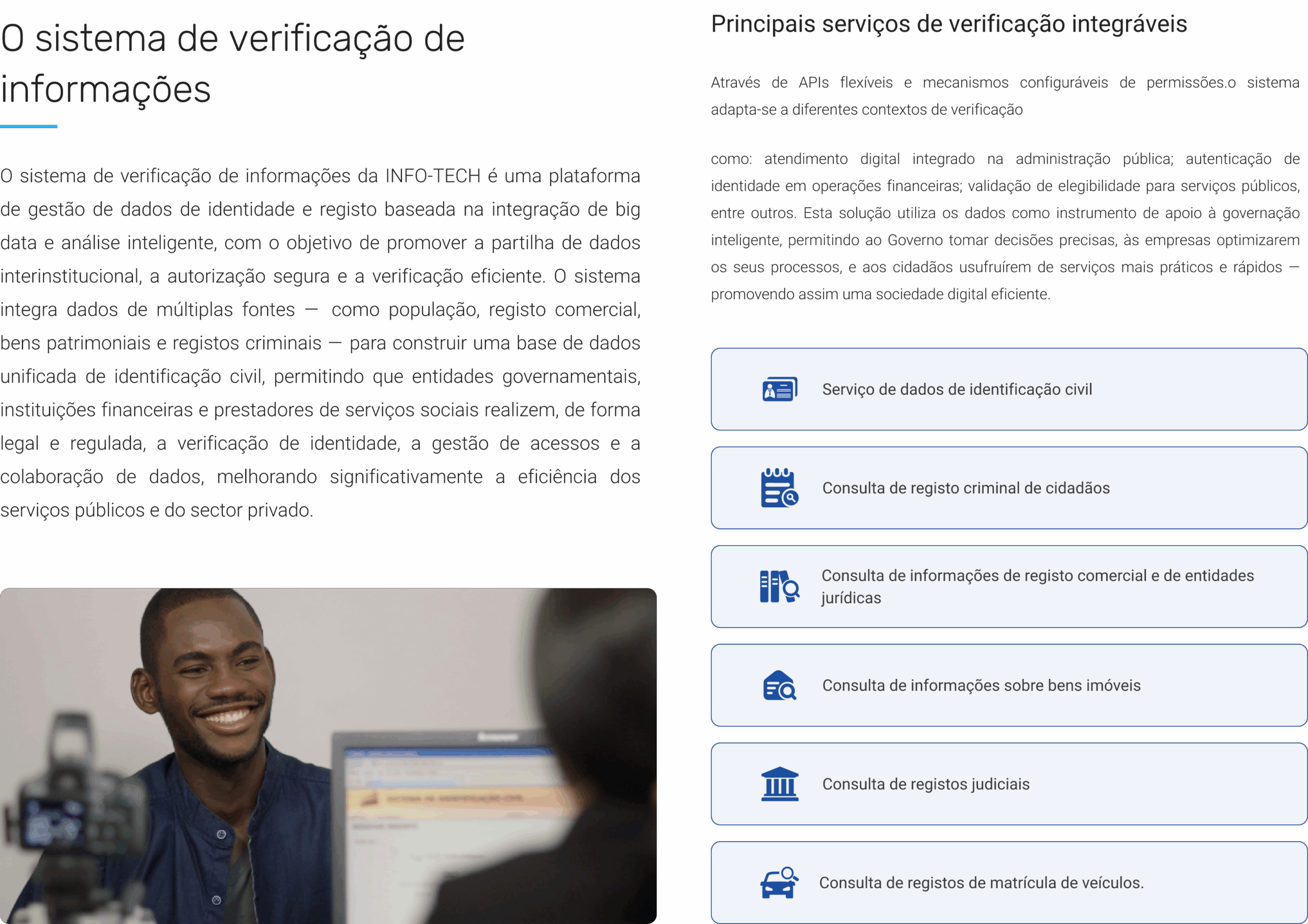 O sistema de verificação de informações da INFO-TECH é uma plataforma de gestão de dados de identidade e